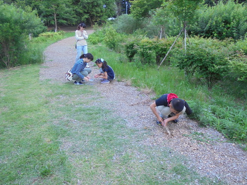 近くの公園にバッタをさがしにもいきました。