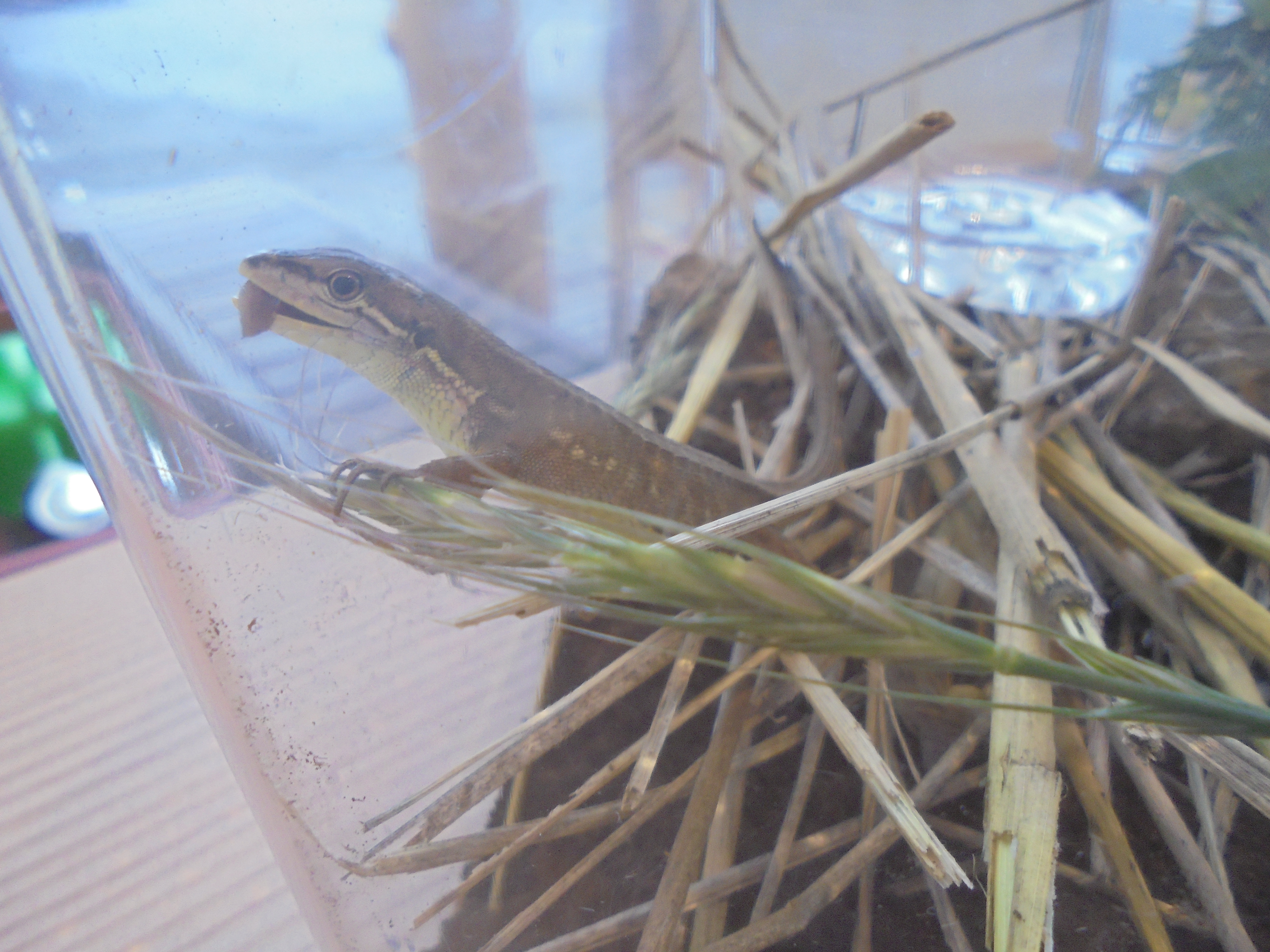 捕まえてきたカナヘビを自分で雄か雌かを調べて、何を食べるか調べ、