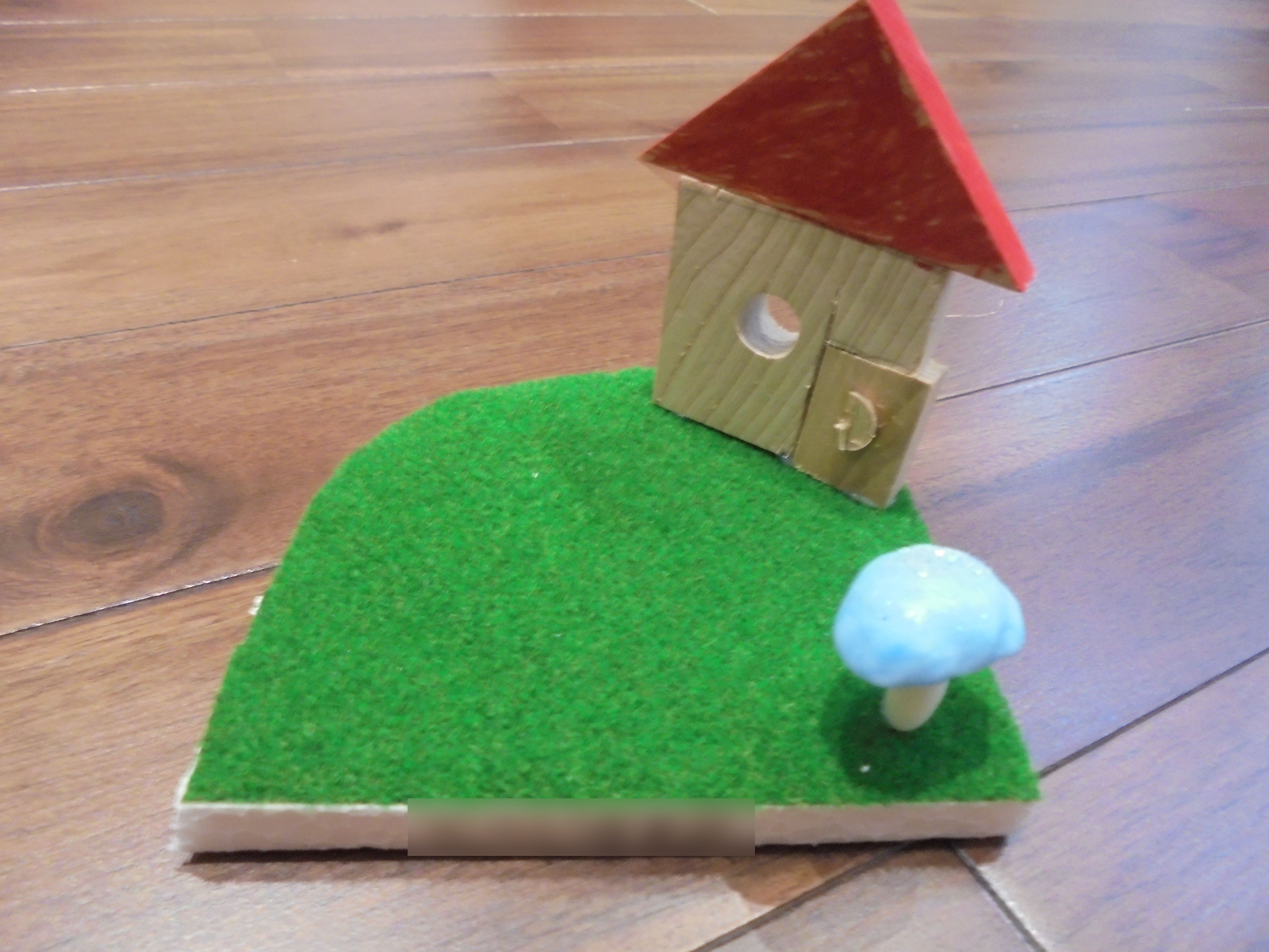 赤い屋根の家も木工で手作りです。