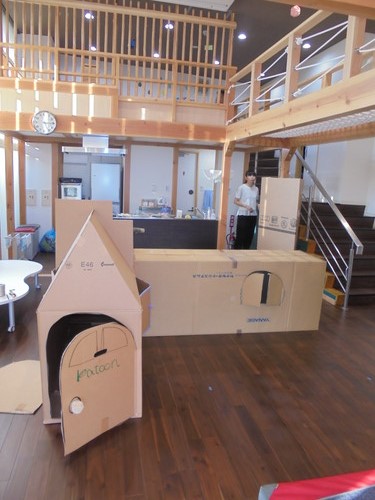 大きな段ボールをつかった基地作りです。