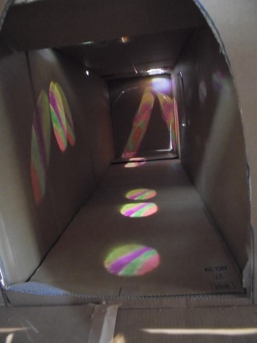 サランラップで作った即席ステンドグラスの光がとてもきれいでした。