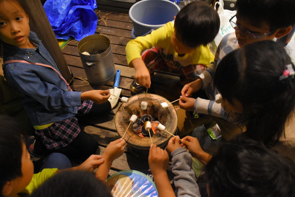 手ずから道具を使って生み出した火で焼いたマシュマロは一味ちがう美味しさがあるとおもいます。