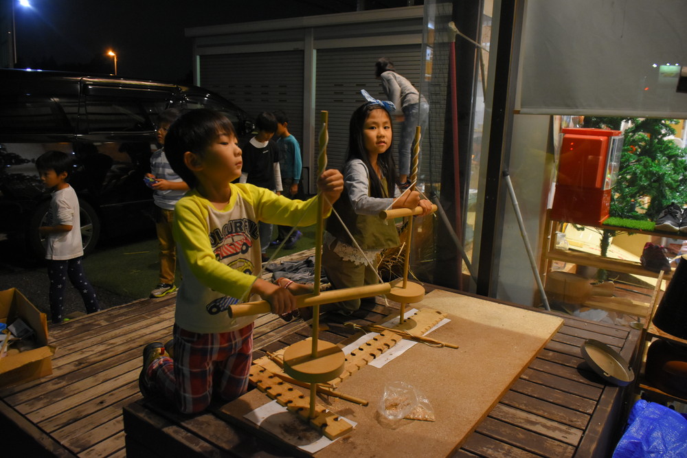 弓状の火おこし器をグルグル回して、摩擦の力で火をおこすものですが、