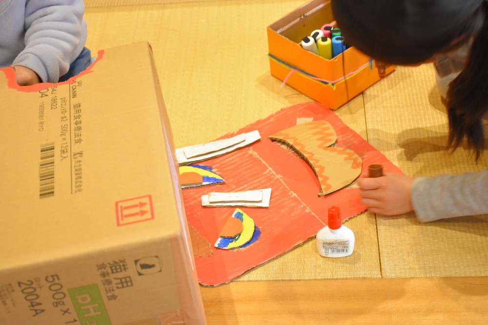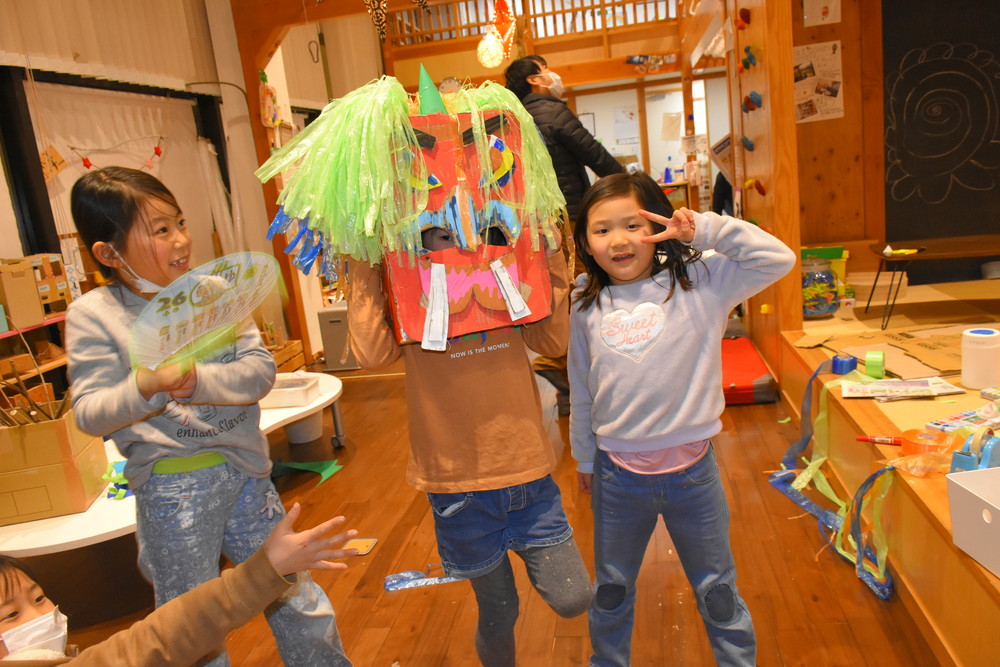 節分という事で、ratoon開設以来恒例?の鬼のお面を子供達と協力で作りました。