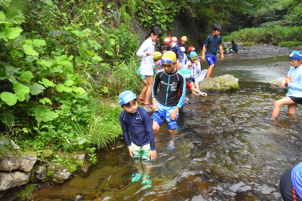 今年は台風の影響もあって久慈川が増水していたため、支流での川遊びとプールの2本立てとなりました。
