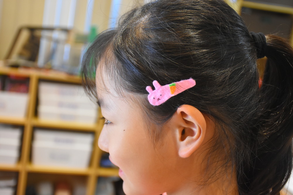 女の子はフェルトを使ってマスコットやヘアピン作り。