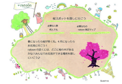 だんだんと温かくなってきて梅の花が咲き、ところどころ桜の花がほころんでいるのが見られるようになってきました。4月はお花見の季節!という事で、ratoonの近くにある桜スポットを探しに出かけます。4月になったらみんなでお花見に出かけよう!